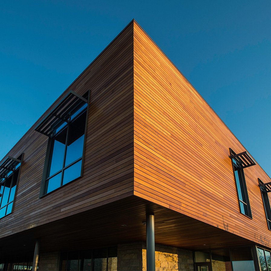 Tropical Pro™ exotic hardwood offers a finishing touch to cladding and soffits, providing both aesthetic appeal and functional benefits. Tropical Pro™ hardwoods help ventilate attics and regulate temperature while also adding visual interest to architectural designs.