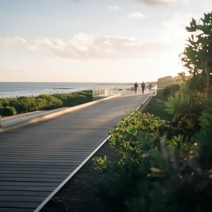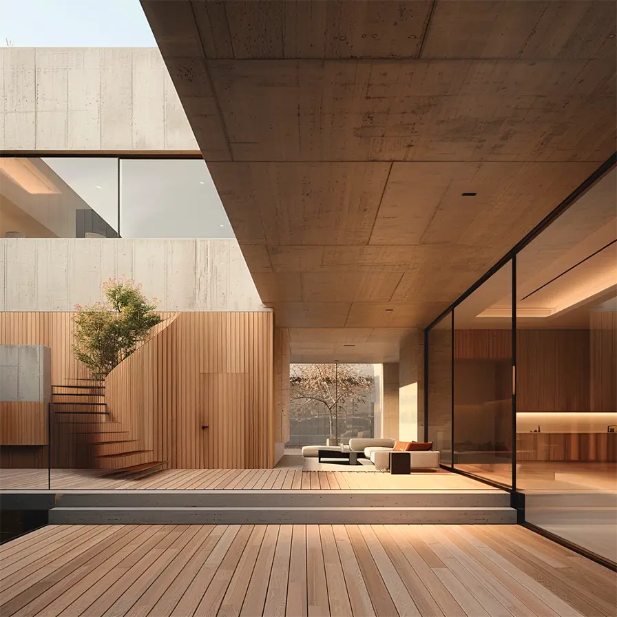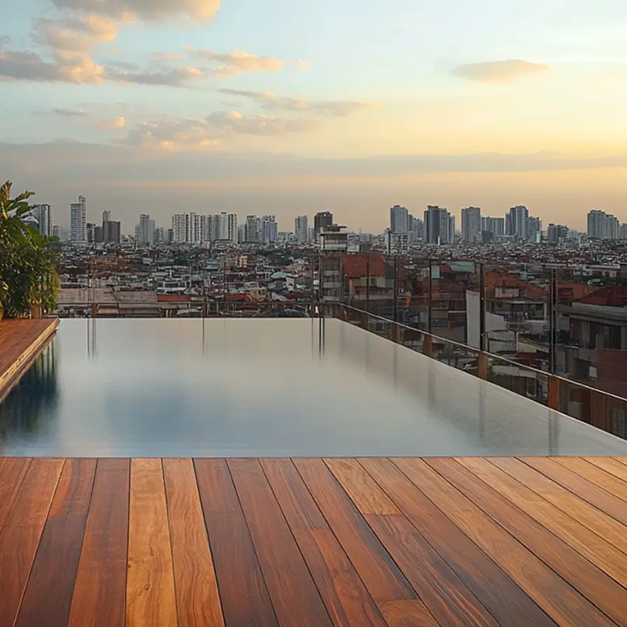 Ipe (Brazilian Walnut) offers deep, rich tones and one of the highest density ratings among hardwoods. Naturally resistant to fire, insects, rot, and moisture, Ipe is the go-to solution for architects and designers who demand long-term performance in commercial and coastal environments.