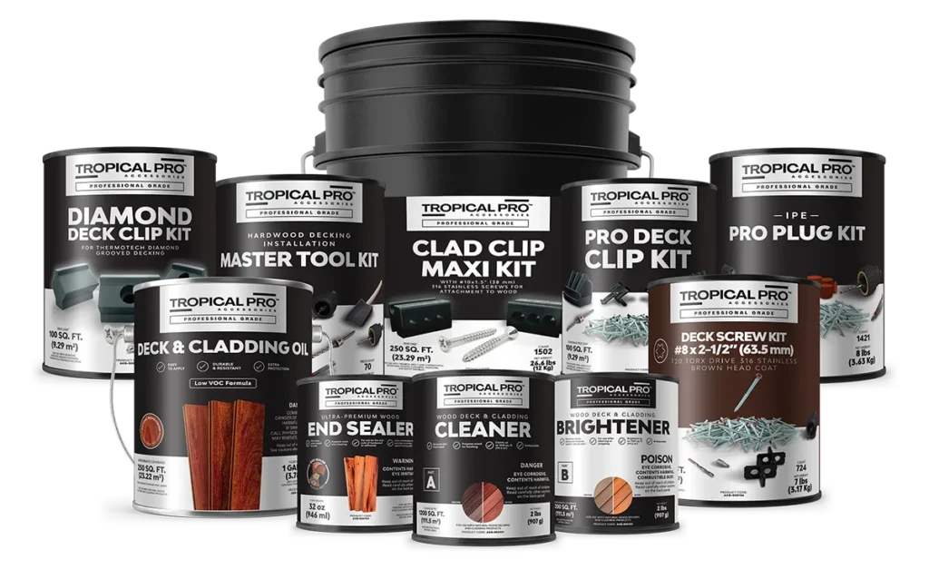 Introducing Tropical Pro Professional Grade Accessory Installation and Maintenance Products – the ultimate choice for flawless installation of your Tropical Pro premium architecturally graded decking and cladding hardwood products. Designed for durability and precision, our accessories ensure a seamless fit and long-lasting performance.