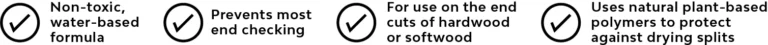 Tropical Pro™ Professional Grade Ultra-Premium Wood End Sealer is a hybrid wax emulsion sealer designed to prevent most end checking (drying splits) in freshly sawn logs, lumber, deck boards, turning blanks, and other wood components.