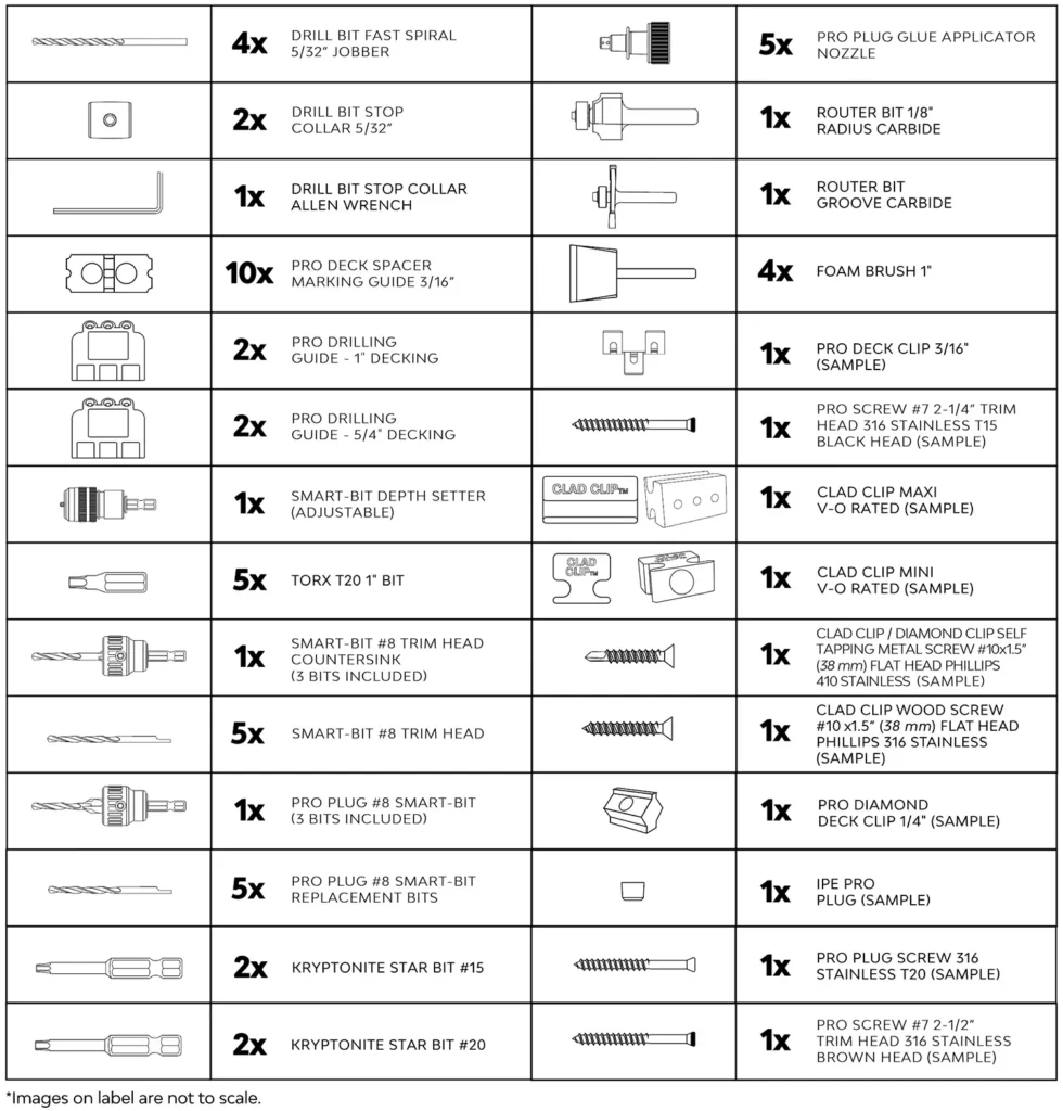 This Tropical Pro™ Hardwood Decking Installation Master Tool Kit contains a collection of the highest-quality deck-building bits and tools from the best manufacturers in the industry. Investing in this product will save you money and keep you from wasting time going back and forth to the hardware store.