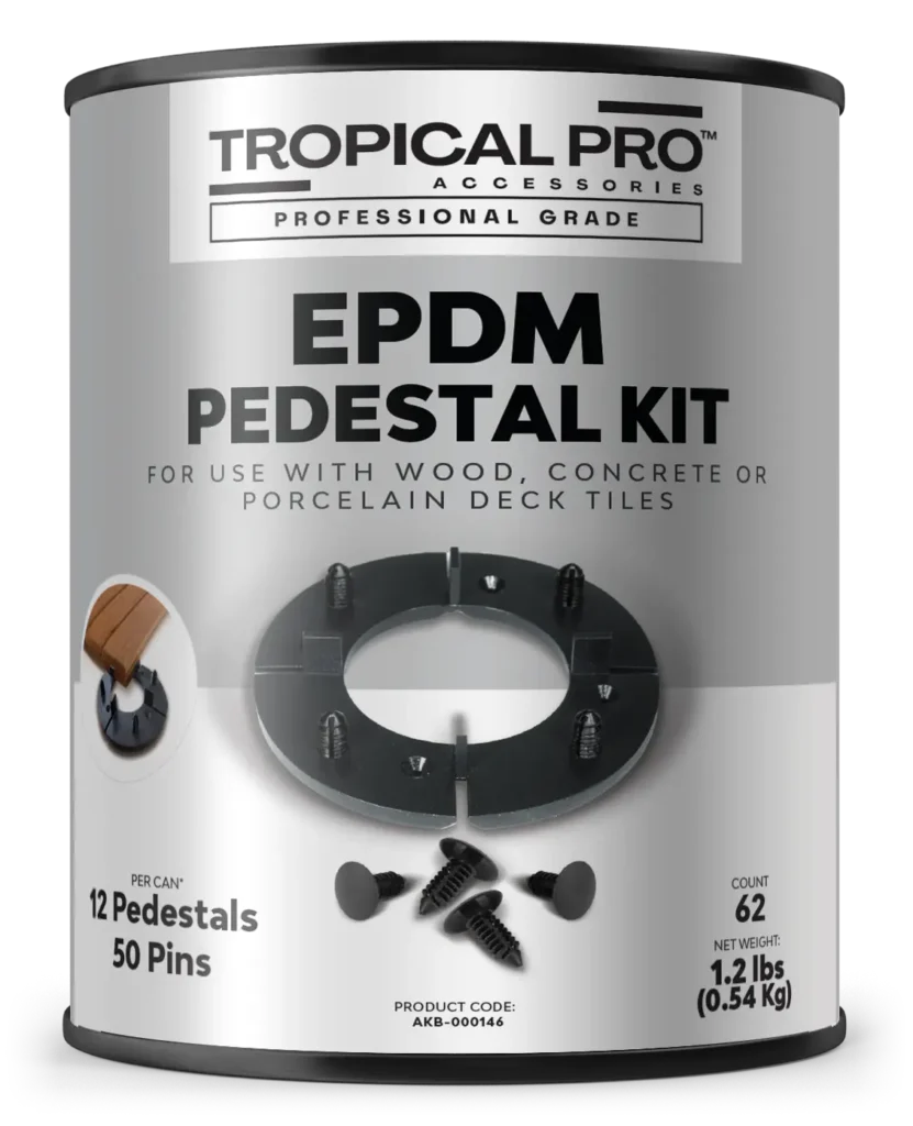 Tropical Pro™ Professional Grade EPDM Pedestal Kit is a comprehensive solution for low-elevation deck tile installations. This system allows deck tiles to follow the natural contour of the roof, pad or existing deck, ensuring water flows freely underneath.