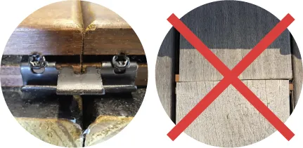 Tropical Pro Deck Clips unique three hole design prevents deck board movement (snaking) at butt joints maintaining consistent spacing between boards.